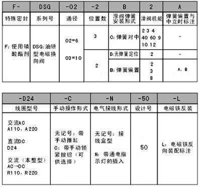 以下為電磁換向閥型號命名方法,請按以下型號訂購。