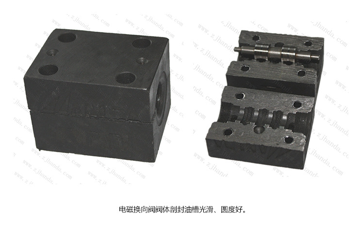 4,電磁換向閥對閥體的光潔度、圓度、同心度要求高,如下閥體剖切圖中封油槽光滑、圓度好。