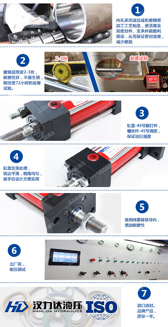 4.耐高溫性:可采用耐高溫密封材料,使油缸在180°C高溫條件下正常工作(客戶訂貨時需向本公司特殊說明訂購);